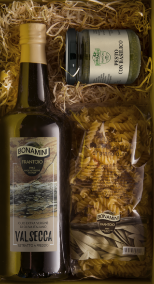 1 bottle of e.v.o. 1,00L Valsecca, Fusilli Pasta and Pesto